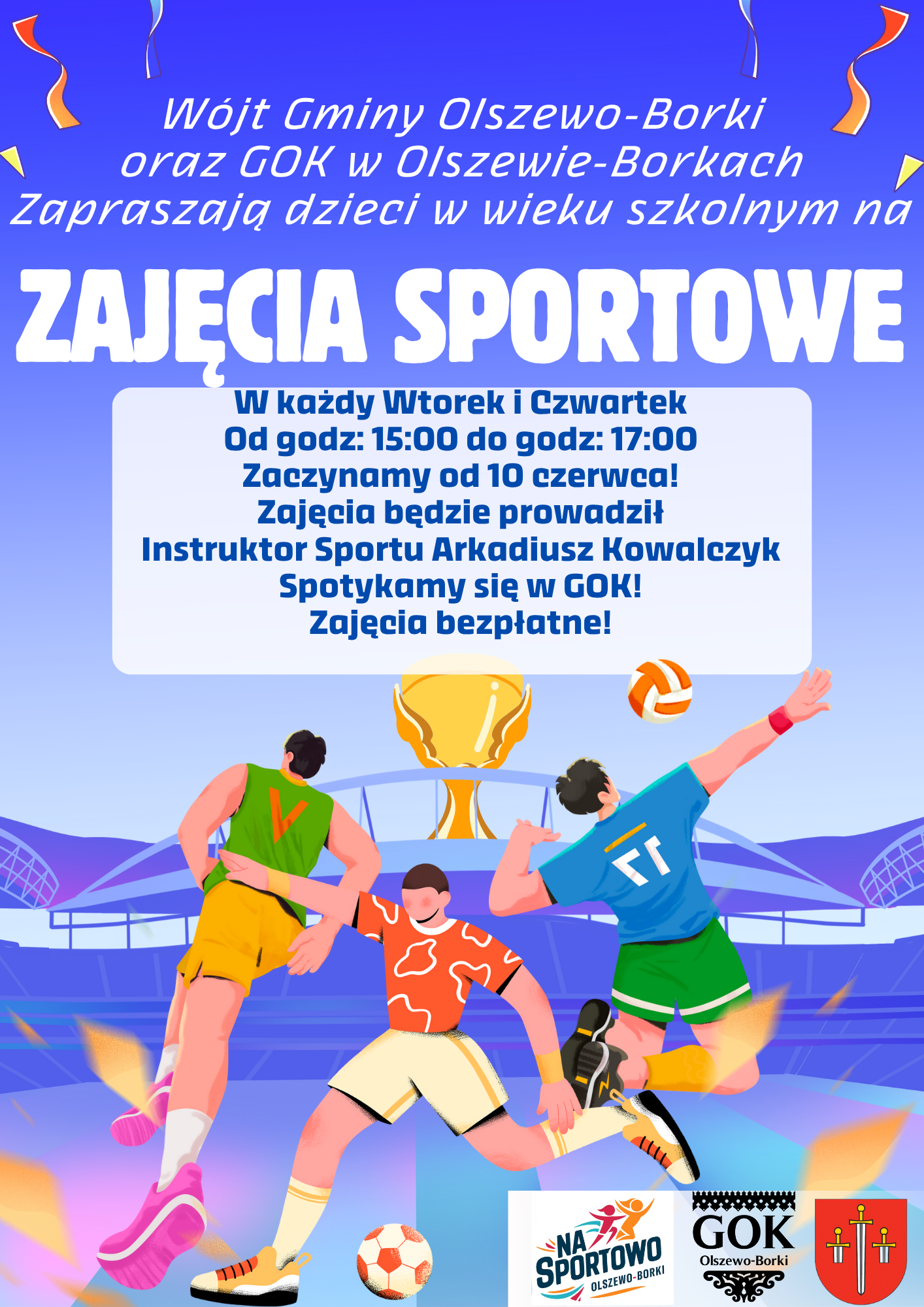 Wójt Gminy Olszewo-Borki oraz GOK w Olszewie-Borkach serdecznie zapraszają wszystkie dzieci w wieku szkolnym na bezpłatne Zajęcia Sportowe! W każdy wtorek i czwartek, od godziny 15:00 do 17:00.
